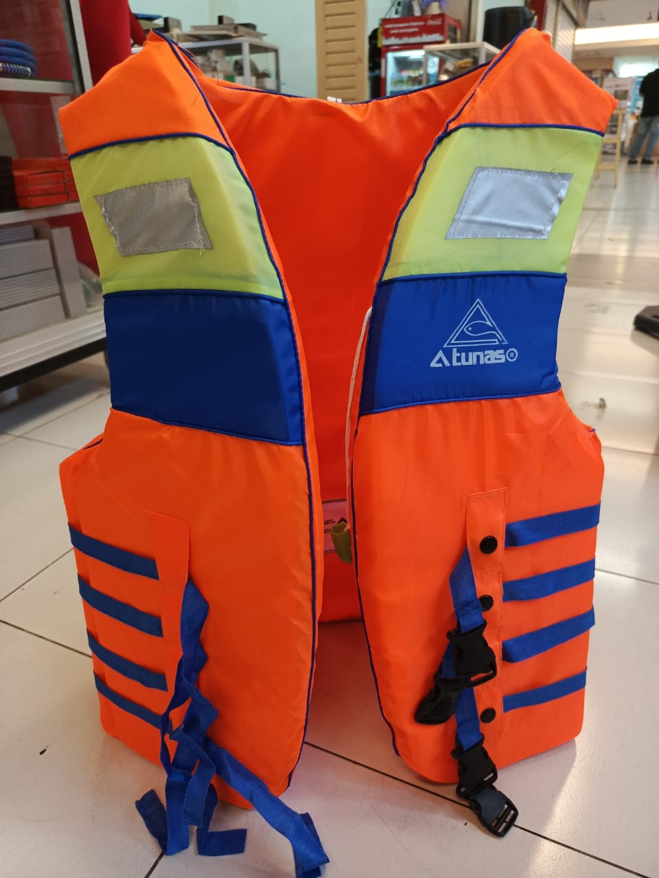 Pelampung Atunas adalah alat keselamatan berbentuk rompi atau life jacket yang berfungsi untuk menjaga tubuh tetap mengapung di air. Produk ini dirancang menggunakan material berkualitas tinggi yang mampu memberikan daya apung optimal serta kenyamanan saat digunakan.
