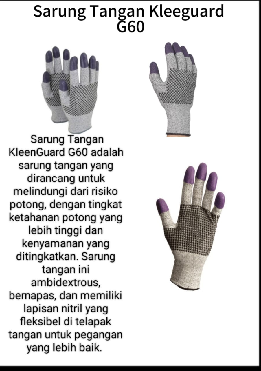 Sarung Tangan Safety KleenGuard G60 menawarkan perlindungan tangan yang efektif untuk kebutuhan pekerjaan industri dengan kenyamanan dan ketahanan optimal tersedia dengan harga termurah di Zirah Safety sebagai pilihan perlengkapan keselamatan kerja.